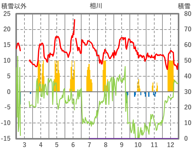 | 日 | 時 | 気温 | 降水 | 風向/風速 | 日照 | 積雪 | 降雪 |