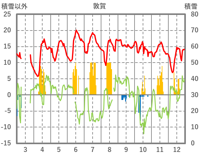 | 日 | 時 | 気温 | 降水 | 風向/風速 | 日照 | 積雪 | 降雪 |
