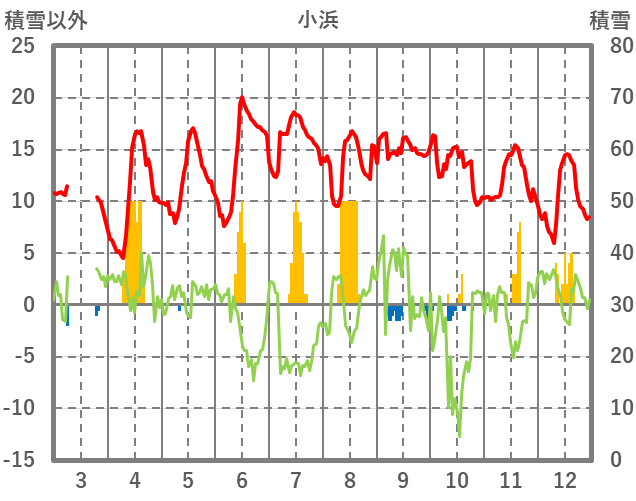 | 日 | 時 | 気温 | 降水 | 風向/風速 | 日照 | 積雪 | 降雪 |