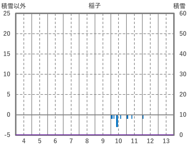 | 日 | 時 | 気温 | 降水 | 風向/風速 | 日照 | 積雪 | 降雪 |