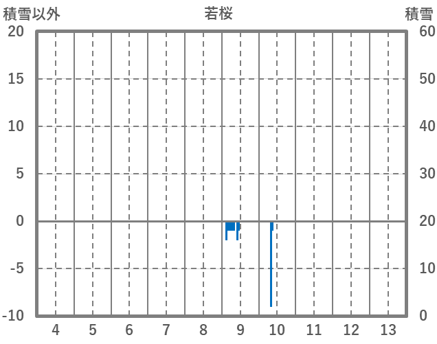 | 日 | 時 | 気温 | 降水 | 風向/風速 | 日照 | 積雪 | 降雪 |