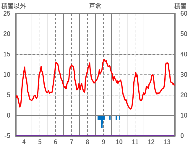| 日 | 時 | 気温 | 降水 | 風向/風速 | 日照 | 積雪 | 降雪 |