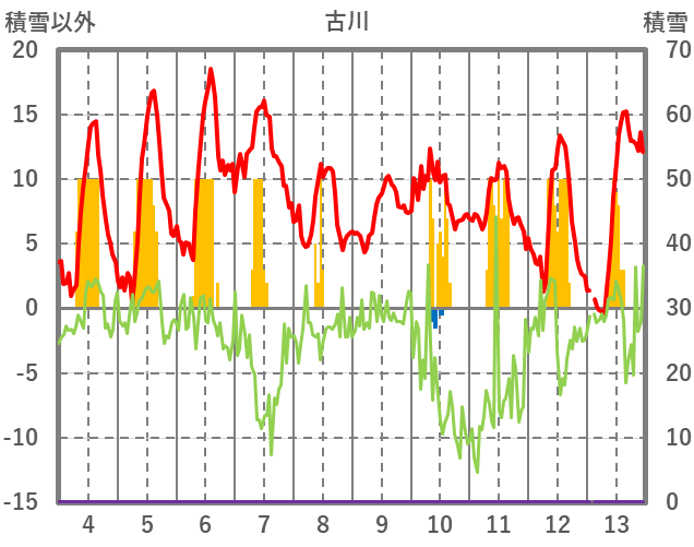 | 日 | 時 | 気温 | 降水 | 風向/風速 | 日照 | 積雪 | 降雪 |