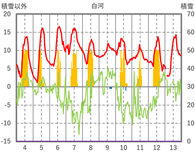 | 日 | 時 | 気温 | 降水 | 風向/風速 | 日照 | 積雪 | 降雪 |