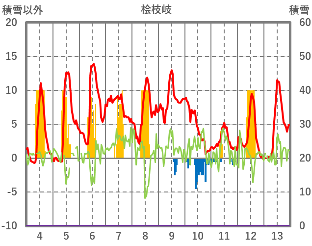 | 日 | 時 | 気温 | 降水 | 風向/風速 | 日照 | 積雪 | 降雪 |