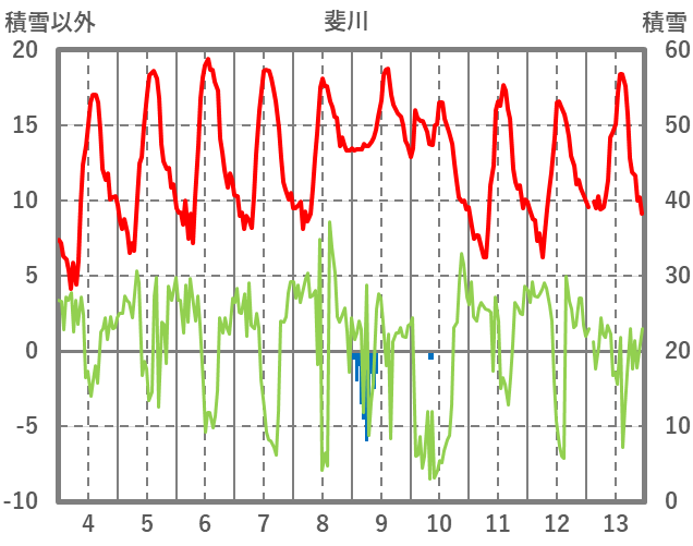 | 日 | 時 | 気温 | 降水 | 風向/風速 | 日照 | 積雪 | 降雪 |