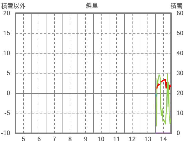 | 日 | 時 | 気温 | 降水 | 風向/風速 | 日照 | 積雪 | 降雪 |