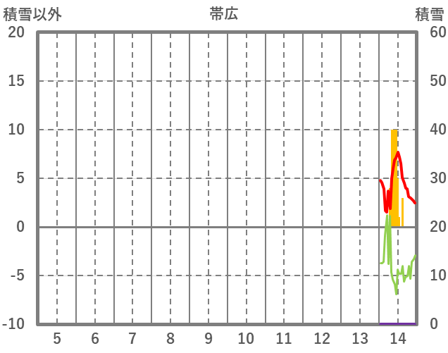 | 日 | 時 | 気温 | 降水 | 風向/風速 | 日照 | 積雪 | 降雪 |