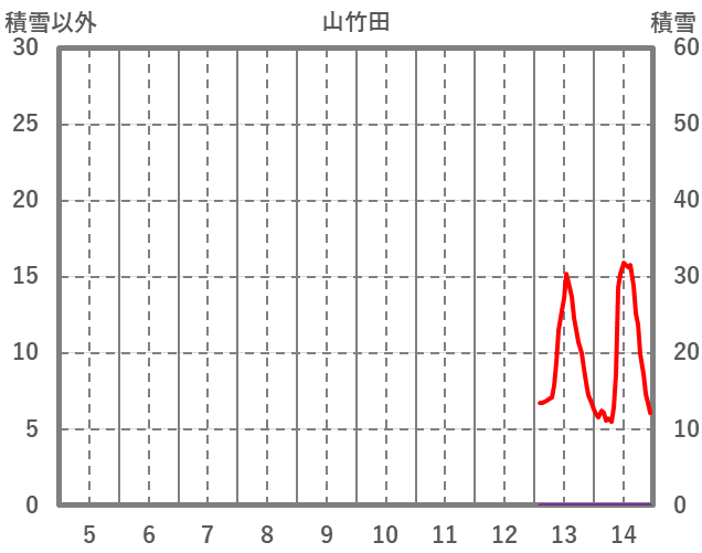 | 日 | 時 | 気温 | 降水 | 風向/風速 | 日照 | 積雪 | 降雪 |
