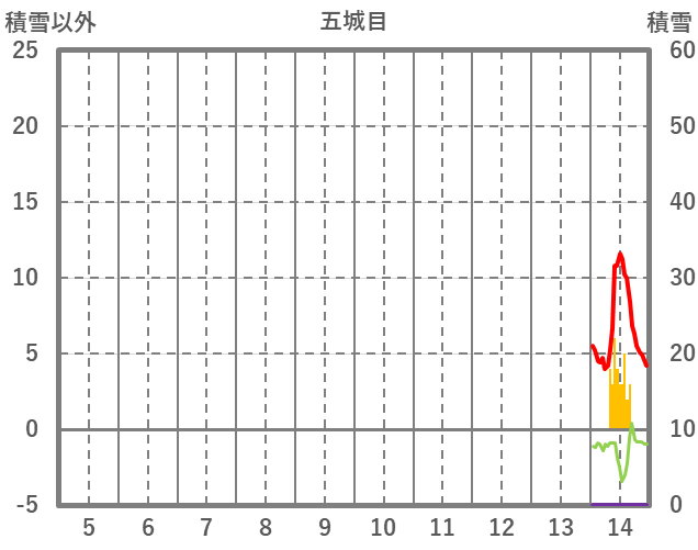 | 日 | 時 | 気温 | 降水 | 風向/風速 | 日照 | 積雪 | 降雪 |