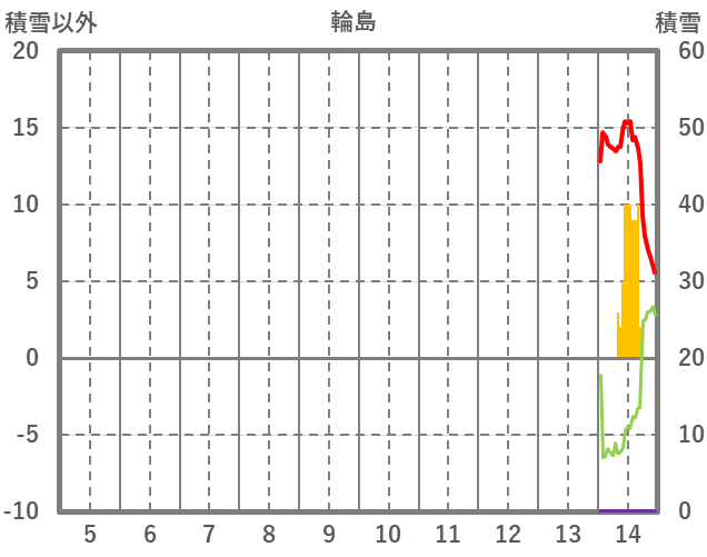 | 日 | 時 | 気温 | 降水 | 風向/風速 | 日照 | 積雪 | 降雪 |