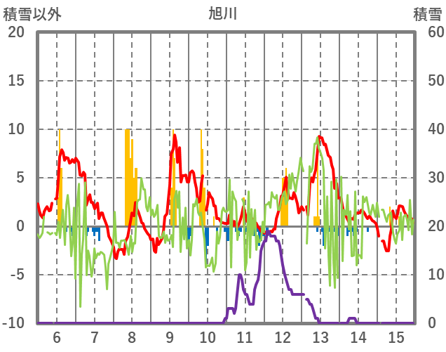 | 日 | 時 | 気温 | 降水 | 風向/風速 | 日照 | 積雪 | 降雪 |