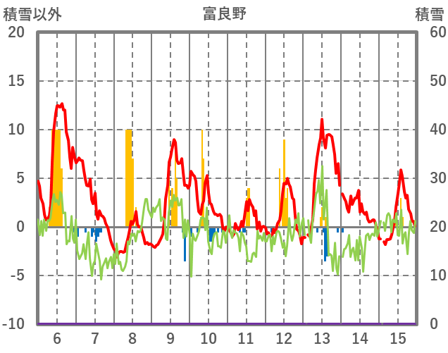 | 日 | 時 | 気温 | 降水 | 風向/風速 | 日照 | 積雪 | 降雪 |