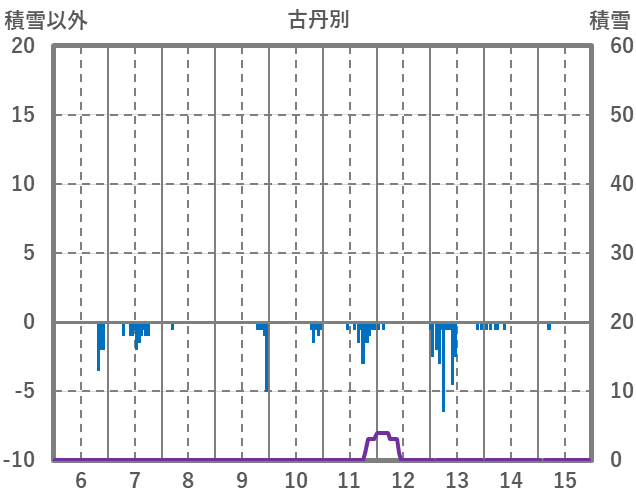 | 日 | 時 | 気温 | 降水 | 風向/風速 | 日照 | 積雪 | 降雪 |