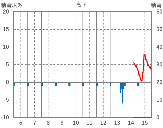 | 日 | 時 | 気温 | 降水 | 風向/風速 | 日照 | 積雪 | 降雪 |
