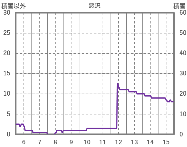 | 日 | 時 | 気温 | 降水 | 風向/風速 | 日照 | 積雪 | 降雪 |