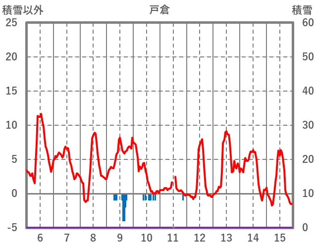 | 日 | 時 | 気温 | 降水 | 風向/風速 | 日照 | 積雪 | 降雪 |