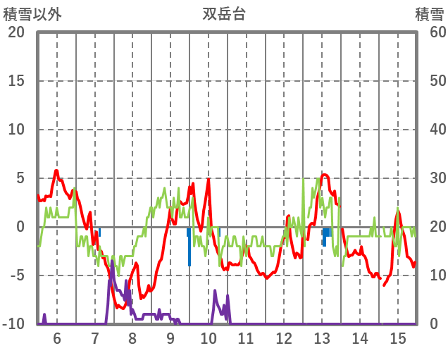 | 日 | 時 | 気温 | 降水 | 風向/風速 | 日照 | 積雪 | 降雪 |