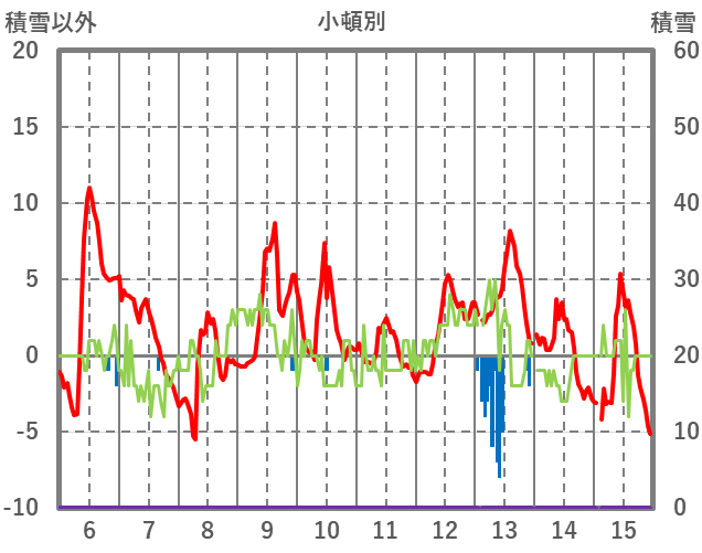 | 日 | 時 | 気温 | 降水 | 風向/風速 | 日照 | 積雪 | 降雪 |