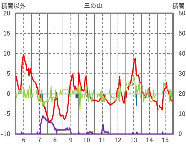 | 日 | 時 | 気温 | 降水 | 風向/風速 | 日照 | 積雪 | 降雪 |