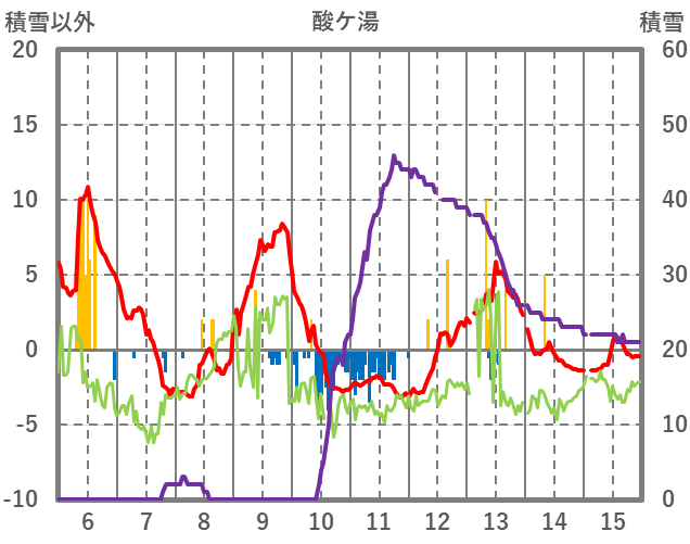 | 日 | 時 | 気温 | 降水 | 風向/風速 | 日照 | 積雪 | 降雪 |