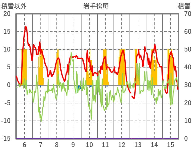 | 日 | 時 | 気温 | 降水 | 風向/風速 | 日照 | 積雪 | 降雪 |