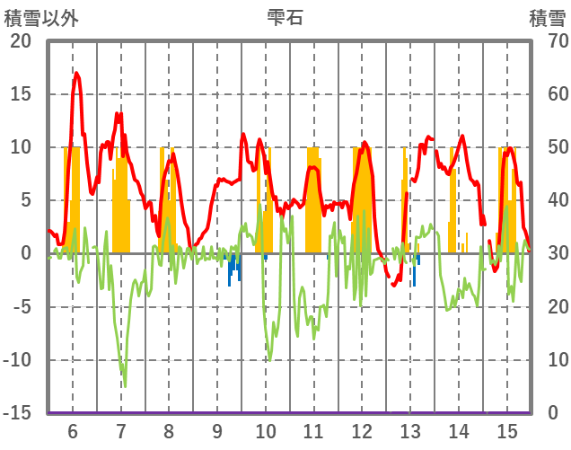 | 日 | 時 | 気温 | 降水 | 風向/風速 | 日照 | 積雪 | 降雪 |