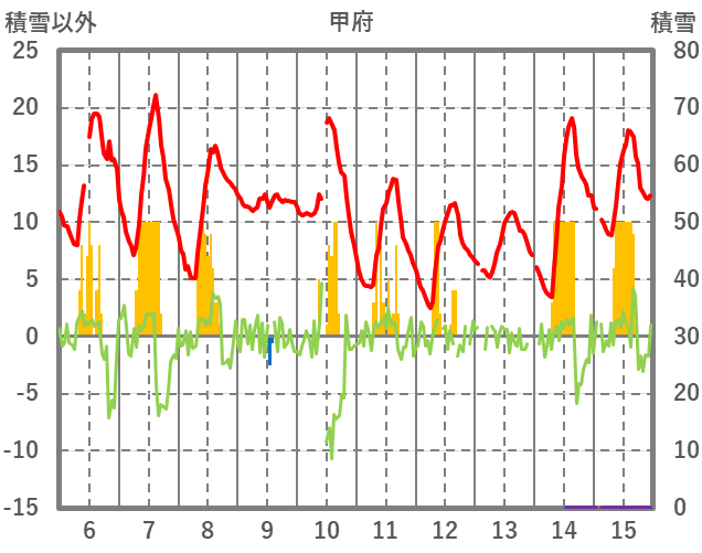 | 日 | 時 | 気温 | 降水 | 風向/風速 | 日照 | 積雪 | 降雪 |