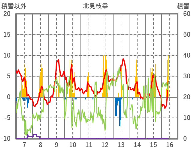 | 日 | 時 | 気温 | 降水 | 風向/風速 | 日照 | 積雪 | 降雪 |