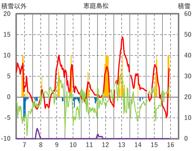 | 日 | 時 | 気温 | 降水 | 風向/風速 | 日照 | 積雪 | 降雪 |