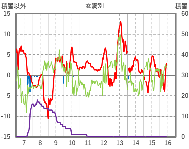 | 日 | 時 | 気温 | 降水 | 風向/風速 | 日照 | 積雪 | 降雪 |
