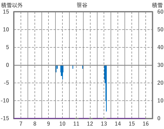 | 日 | 時 | 気温 | 降水 | 風向/風速 | 日照 | 積雪 | 降雪 |