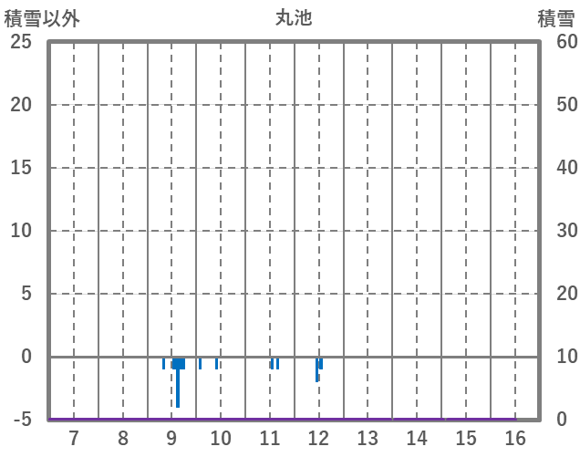 | 日 | 時 | 気温 | 降水 | 風向/風速 | 日照 | 積雪 | 降雪 |