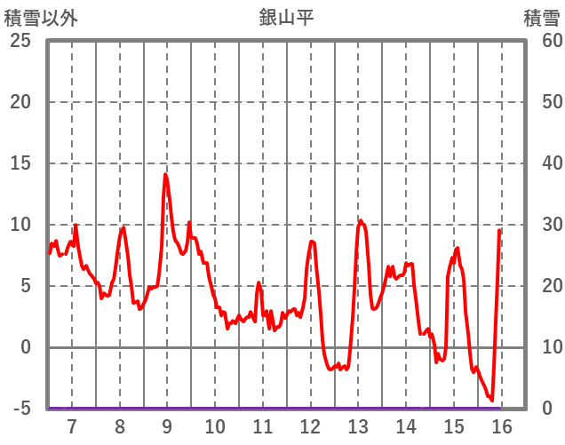 | 日 | 時 | 気温 | 降水 | 風向/風速 | 日照 | 積雪 | 降雪 |