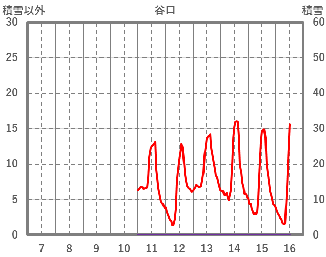 | 日 | 時 | 気温 | 降水 | 風向/風速 | 日照 | 積雪 | 降雪 |