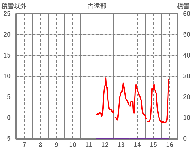 | 日 | 時 | 気温 | 降水 | 風向/風速 | 日照 | 積雪 | 降雪 |