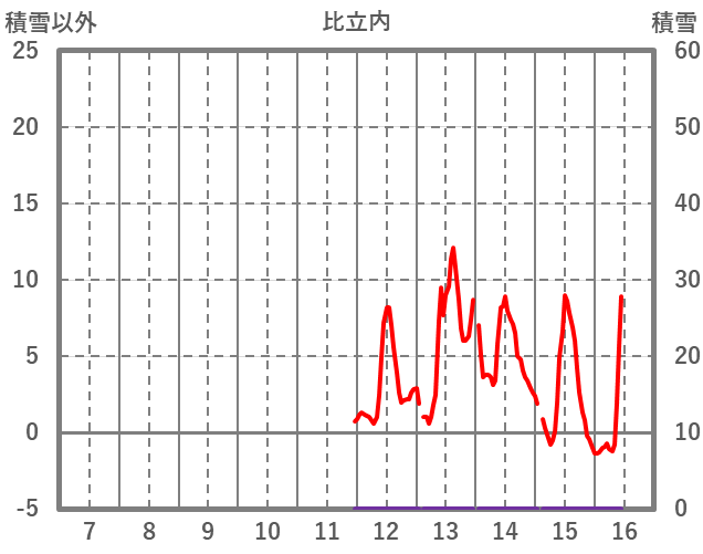 | 日 | 時 | 気温 | 降水 | 風向/風速 | 日照 | 積雪 | 降雪 |