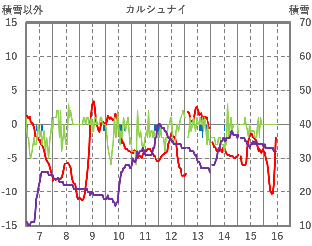 | 日 | 時 | 気温 | 降水 | 風向/風速 | 日照 | 積雪 | 降雪 |