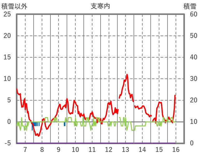 | 日 | 時 | 気温 | 降水 | 風向/風速 | 日照 | 積雪 | 降雪 |