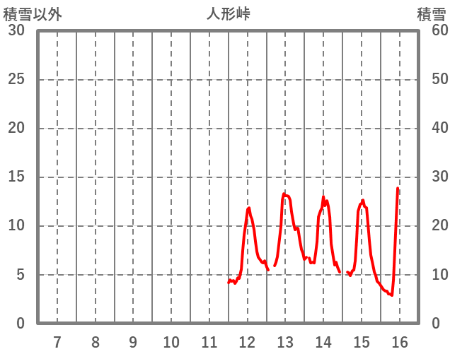 | 日 | 時 | 気温 | 降水 | 風向/風速 | 日照 | 積雪 | 降雪 |