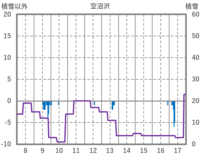 | 日 | 時 | 気温 | 降水 | 風向/風速 | 日照 | 積雪 | 降雪 |