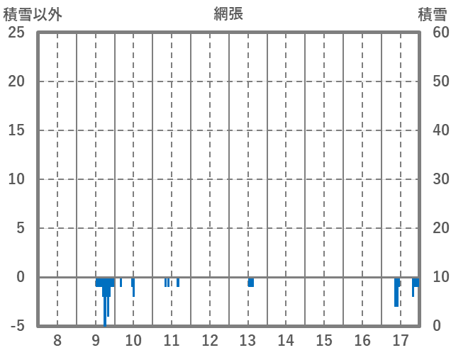 | 日 | 時 | 気温 | 降水 | 風向/風速 | 日照 | 積雪 | 降雪 |