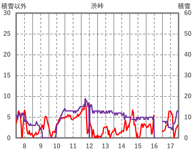 | 日 | 時 | 気温 | 降水 | 風向/風速 | 日照 | 積雪 | 降雪 |