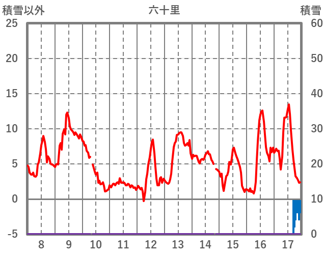 | 日 | 時 | 気温 | 降水 | 風向/風速 | 日照 | 積雪 | 降雪 |