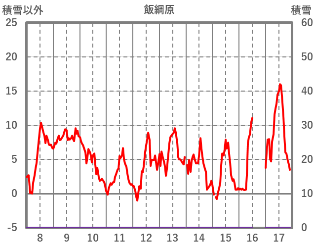 | 日 | 時 | 気温 | 降水 | 風向/風速 | 日照 | 積雪 | 降雪 |