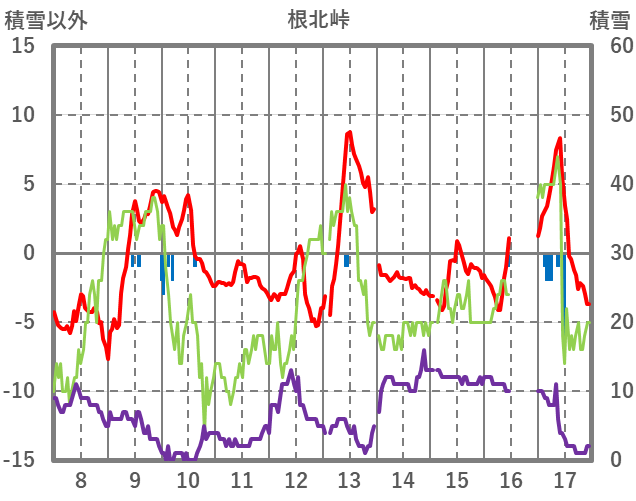 | 日 | 時 | 気温 | 降水 | 風向/風速 | 日照 | 積雪 | 降雪 |