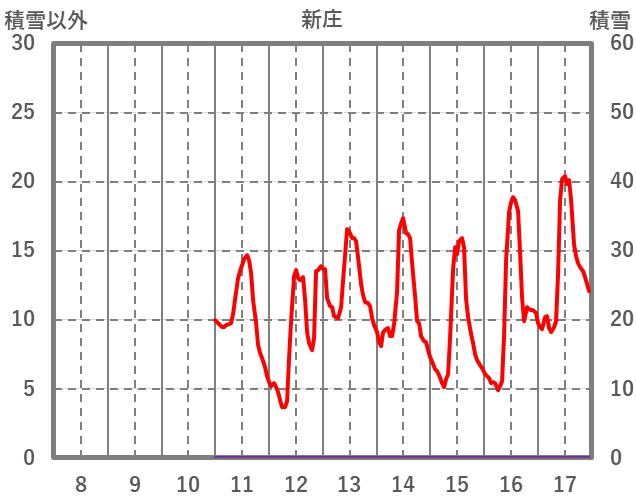 | 日 | 時 | 気温 | 降水 | 風向/風速 | 日照 | 積雪 | 降雪 |