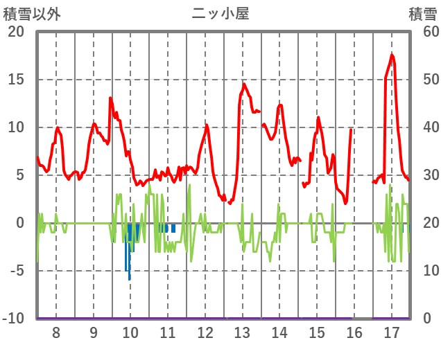 | 日 | 時 | 気温 | 降水 | 風向/風速 | 日照 | 積雪 | 降雪 |