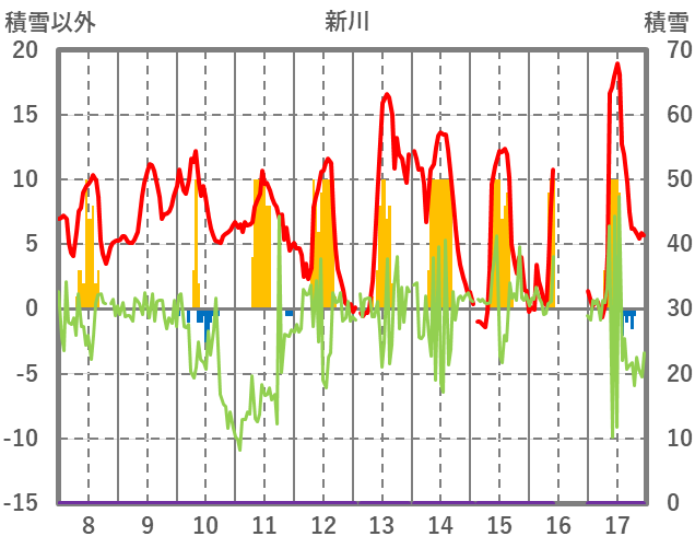 | 日 | 時 | 気温 | 降水 | 風向/風速 | 日照 | 積雪 | 降雪 |