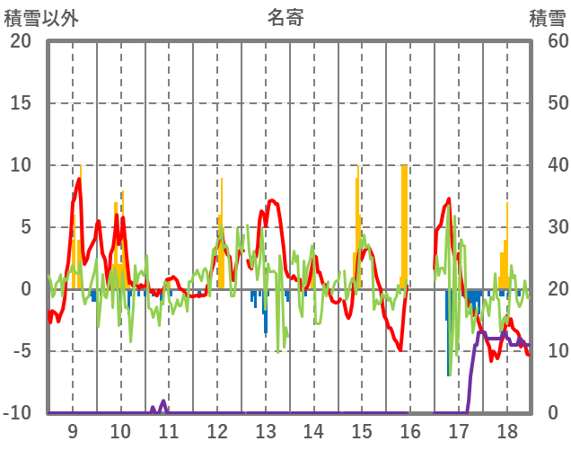 | 9 | -4.3 | 0.5 | NNW/3.4 | 18 | 12 | 0 | |